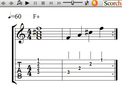 The following exercises use 3 Augmented chords each and show how to practice learning and changing between chords.