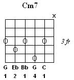The Root of the Cm7 Barre Chord is located on the 3rd fret of the 5th string.