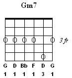 Notice that it is Not the same as the Gm7 chord with the Root off the 6th string and again the 6th & 5th strings aren't played. It doesn't sound as full or powerful as the previous Barre chords though.
