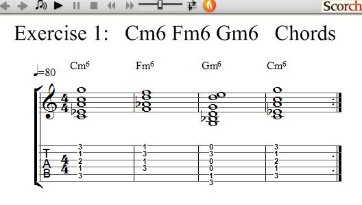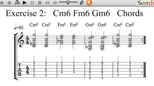 The following exercises use 3 Minor Six chords each and show how to practice learning and changing between chords.