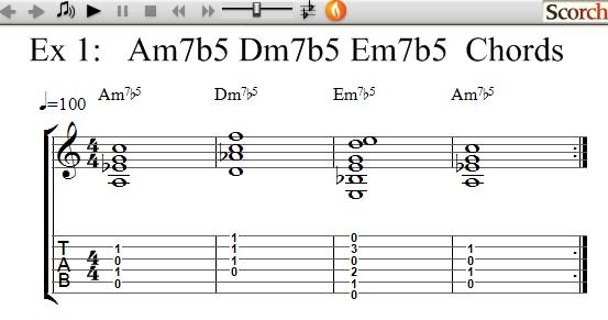 uses the Am7b5, Dm7b5 and Em7b5 chords, which are each shown separately for