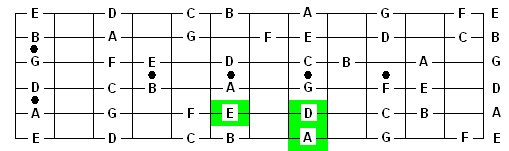 For example, if a song is in the key of A major then the common chords played are A - D - E or E7. Thus, the song is based on these fretboard notes;