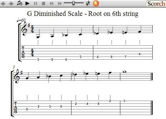 The Diminished scale is also known as a symmetrical scale because the fingering patterns are repeating making it easy to memorize and play. This scale is very popular in jazz and heavy metal music.
