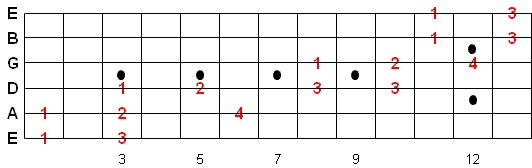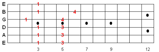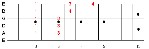 Once you memorize this fingering pattern you can reuse it by moving up or down the fretboard. Whatever note you start on is the 1st note of the scale.