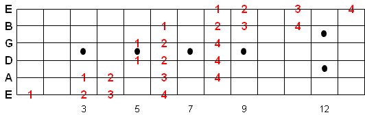Once you memorize this fingering pattern you can reuse it by moving up or down the fretboard. Whatever note you start on is the 1st note of the scale.