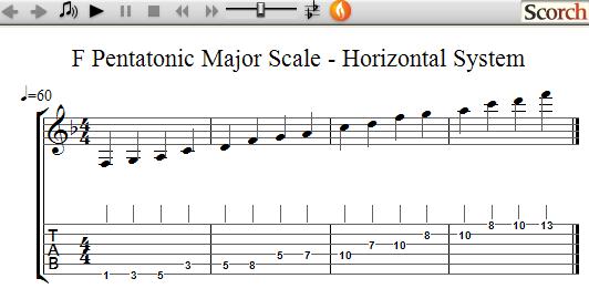 Horizontal System - Uses more of the fretboard to give you a 3 octave range.