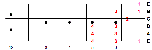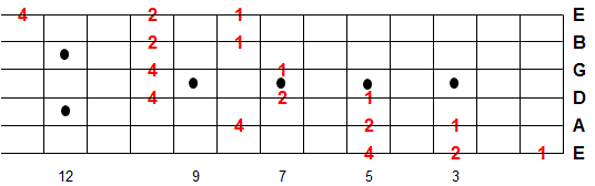 Once you memorize this fingering pattern you can reuse it by moving up or down the fretboard. Whatever note you start on is the 1st note of the scale.