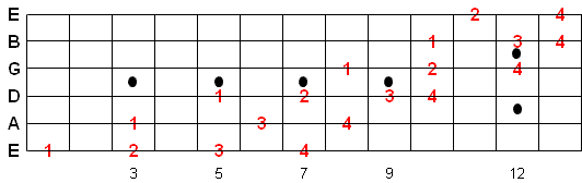 Once you memorize this fingering pattern you can reuse it by moving up or down the fretboard. Whatever note you start on is the 1st note of the scale.